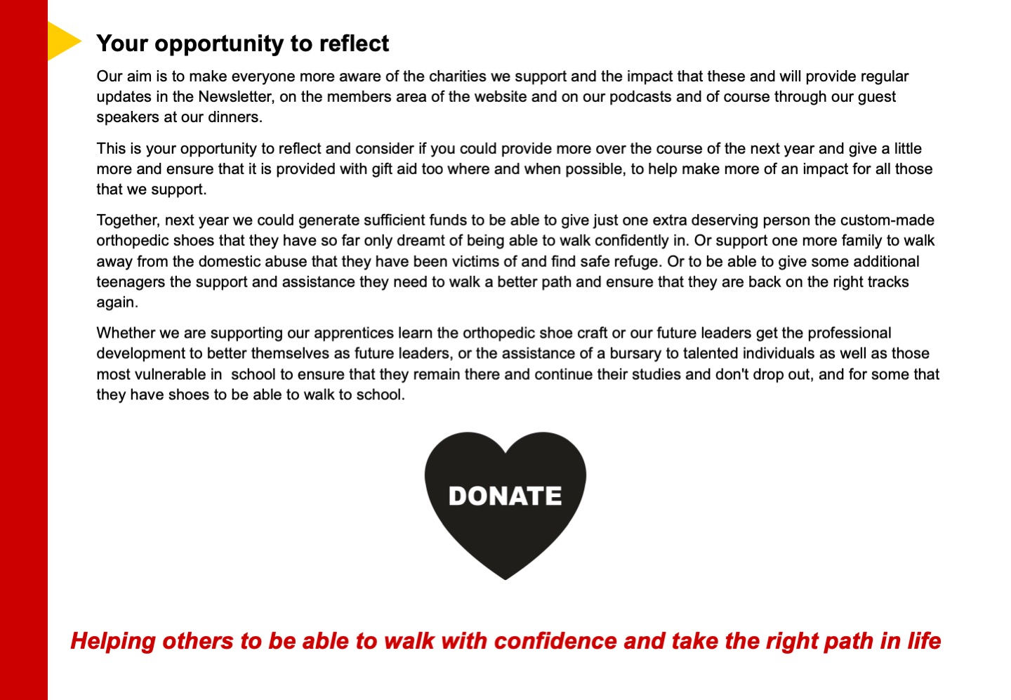 We do all of this by asking our liveryman to donate money to all our fundraising efforts. If you are reading this and are one of our Liveryman then please do get more involved, or pehaps considering becoming a freeman and joining us, if you can, donate what you can, so others can walk more confidently in life.
